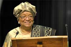 Liberian President Ellen Johnson Sirleaf, aUnited Methodist,speaks to the assembly. A UMNS photo by Paul Jeffrey
