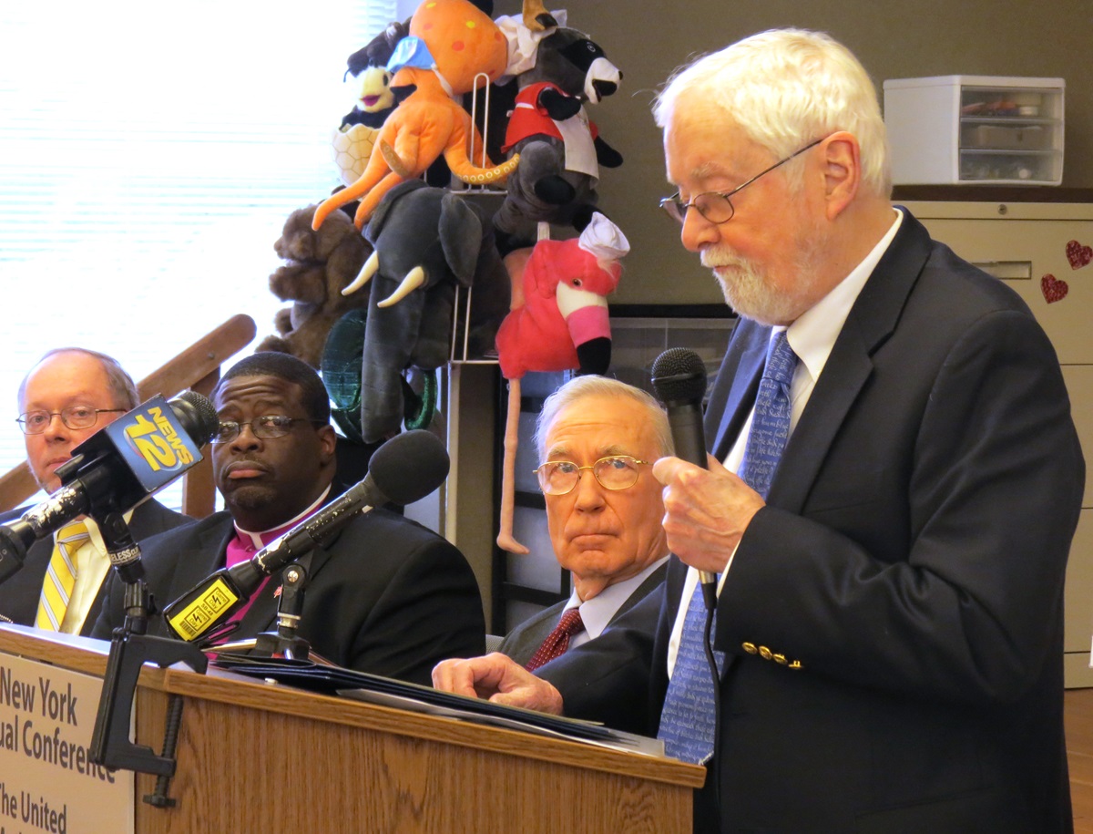 The announcement from the official court handling the complaint for the New York Annual (regional) Conference came during a news conference March 10.