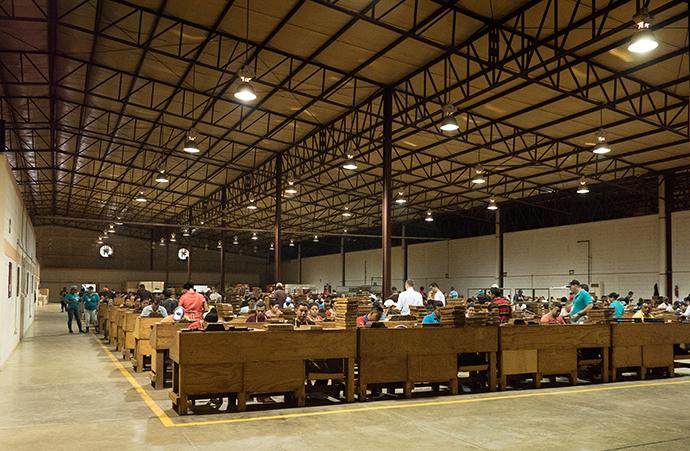 La fábrica se divide en tres secciones: pre-producción, producción y empaque. Las hojas de tabaco tardan entre dos y tres años para fermentar. Lo primero que se nota al entrar en la fábrica es un olor ligeramente dulce y picante, pues es una mezcla de amoníaco y azúcar de la nicotina, combinado con aromas como cereza, miel, moca y mezquite añadido a las hojas. Este olor penetra cada centímetro de la enorme fábrica.
