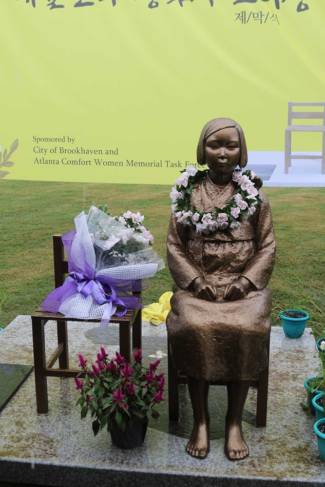 조지아 주 애틀랜타 지역의 교회들과 교민들의 적극적인 도움과 한인회의 노력으로 무산될뻔한 평화의 소녀상 건립이 드디어 이루어졌다. 지난 6월 30일(금) 오전 10시에 조지아 주 Brookhaven시의 Blackburn Park II 공원에서는 평화의 소녀상 제막식이 있었다. 장대비가 쏟아지던 이 제막식에는 Brookhaven시의 시장을 포함한 지역 인사, 애틀랜타 한인회, 그리고 교민 등 약250여 명이 참석하였고, 어린 자녀들을 데리고 온 교민 가족들도 많이 눈에 띄었다. 또한, 이 제막식을 취재하기 위해 온 지역 방송국과 한국 방송국, 그리고 일본 방송국 등에서 열띤 취재 경쟁을 벌이기도 했다.