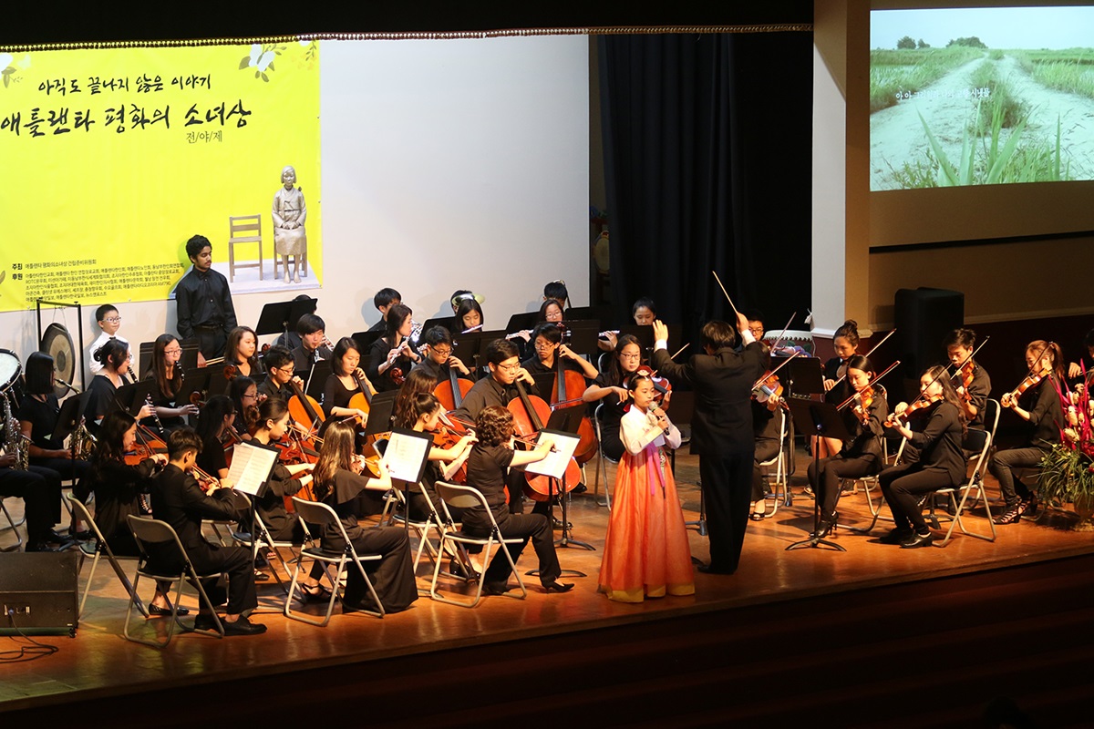 이번 제막식에는 위안부 피해 생존자 중 최연소(90세)인 강일출 할머니가 참석해 그 의미를 더했다. 강일출 할머니는 16살 때 끌려가 짐승처럼 취급 받던 그 당시 상황을 참석자들에게 전하며, “내 고향이 경북 상주”라는 말을 여러 번 말하며 전쟁 후에도 고향에 돌아가지 못했던 아픔을 말하기도 했다. 전날 29일(목)에는 교민 약 400여 명이 모여 “아직도 끝나지 않은 이야기 소녀상”이라 주제로 평화의 소녀상 제막식 전야제 축하 행사가 있었다. 이 전야제에서도 강일출 할머니는 평화의 소녀상을 위해 도움을 준 미국인들과 우리 동포들을 잊지 않겠다는 감사의 인사를 했다. 이 전야제에서는 특히 아틀란타한인교회 오케스트라와 어린이 합창단이 애국가 멜로디의 곡 연주나 ‘고향의 봄’ 등의 가곡을 불렀다.