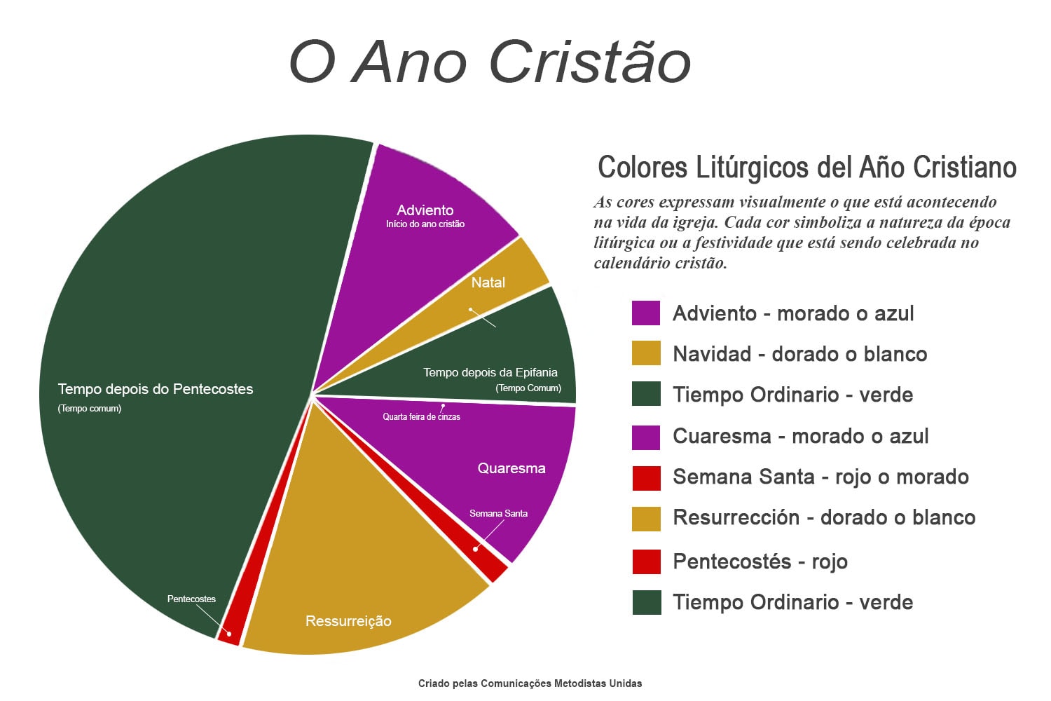 Cada uma dessas estações começa com um tempo de preparação e antecipação, seguido de um tempo de celebração. O Tempo Comum segue cada ciclo.